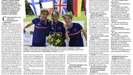 Louise et Caroline sont à l'honneur dans le journal L'Alsace du jour. Un bel article sur leur médaille, la CO et leur parcours, à retrouver sur https://www.lalsace.fr/societe/2025/08/15/course-d-orientation-deux-mulhousiennes-sur-le-bon-chemin