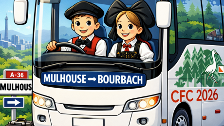 Mulhouse Gare ↔ Bourbach-le-Bas Suite au sondage réalisé auprès des participants, et afin de faciliter les déplacements entre les sites de compétition, nous avons décidé de mettre en place une navette officielle CFC 2026 entre Mulhouse Gare et Bourbach-le-Bas. 📅 Samedi ➜ Aller Mulhouse Gare → Bourbach-le-Bas ➜ Retour Bourbach-le-Bas → Mulhouse Gare 📅 Dimanche