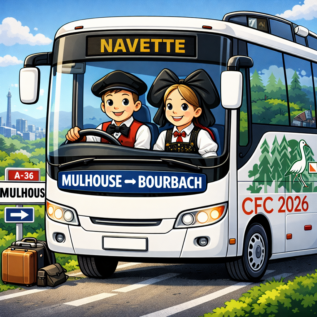Suite au sondage réalisé auprès des participants, et afin de faciliter les déplacements entre les sites de compétition, nous avons décidé de mettre en place une navette officielle CFC 2026 entre Mulhouse Gare et Bourbach-le-Bas.
